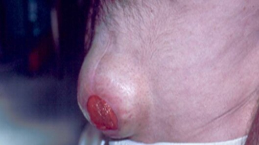 A área afetada não tem pele, pode ter pequenas bolhas ou gotinhas de sangue e na maioria das situações é causada por “arrancamento” da placa ou saco.