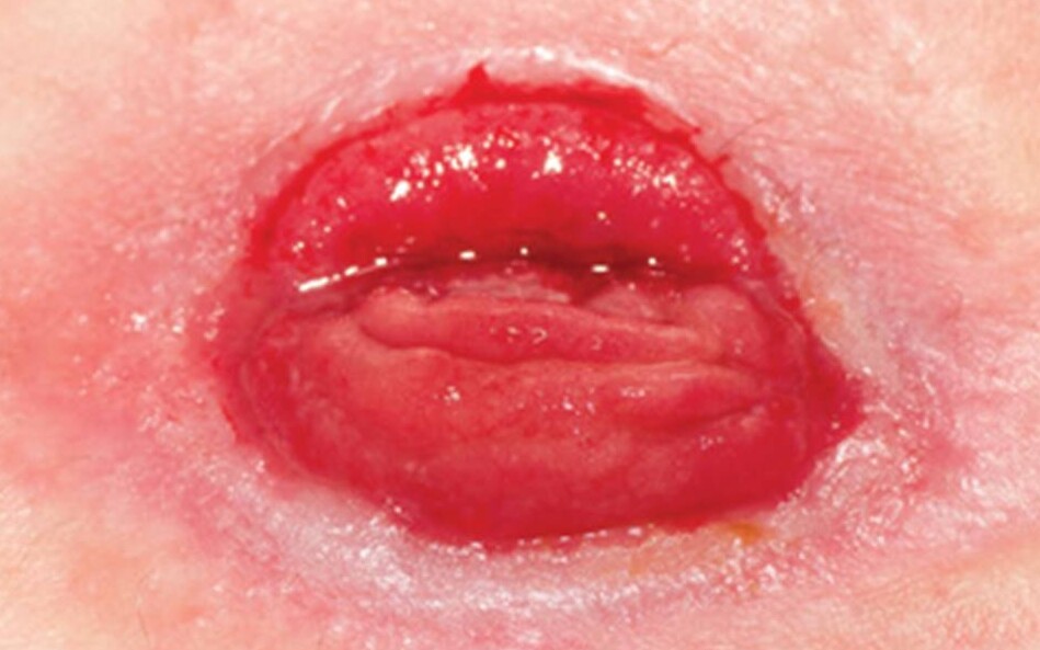 Ostomia que resulta de uma intervenção cirúrgica realizada para trazer o íleo à pele através da parede abdominal.